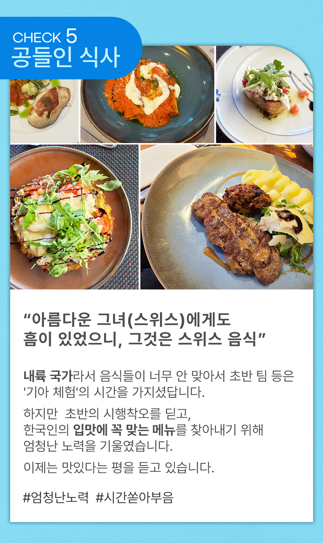 품질 좋은 식사: 4회 + 융프라우 컵라면