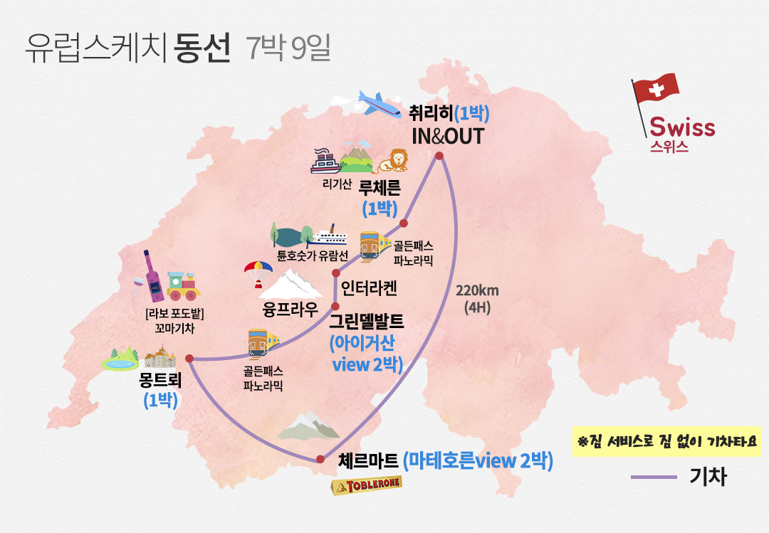 리기산, 융프라우, 피르스트, 마테호른, 튠 호수 유람선까지.