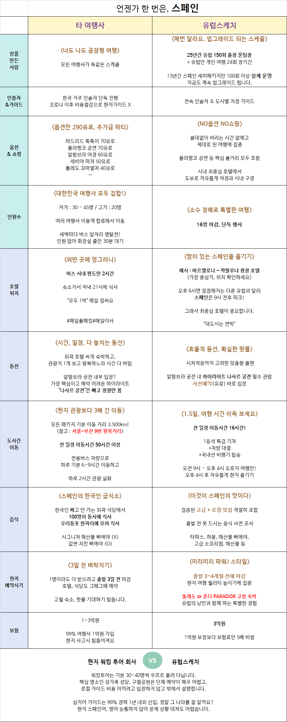 유럽스케치는 이 문장을 항공권 검색창 앞에서 매일 실천합니다. 남다른 정성으로 끓여낸 스페인 여행, 이제 떠날 준비 되셨나요?