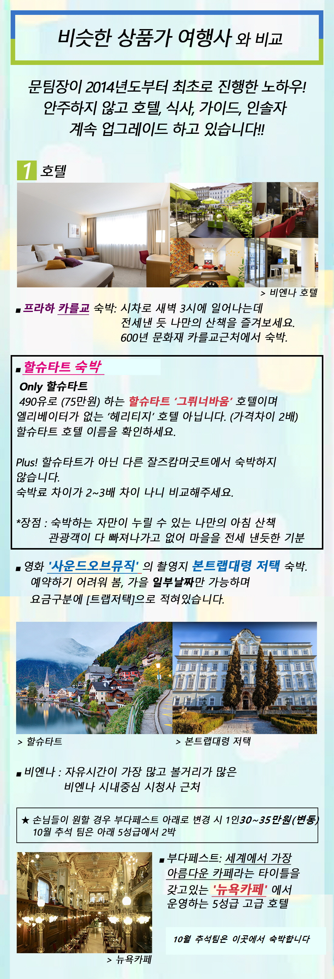 * 사운드오브뮤직의 본트랩대령 저택은 일찍 예약마감이 되야 숙박이 가능하며 처음부터 표시를 합니다.잘츠부르크 다른 호텔보다 50% 가격이 더 비쌉니다.