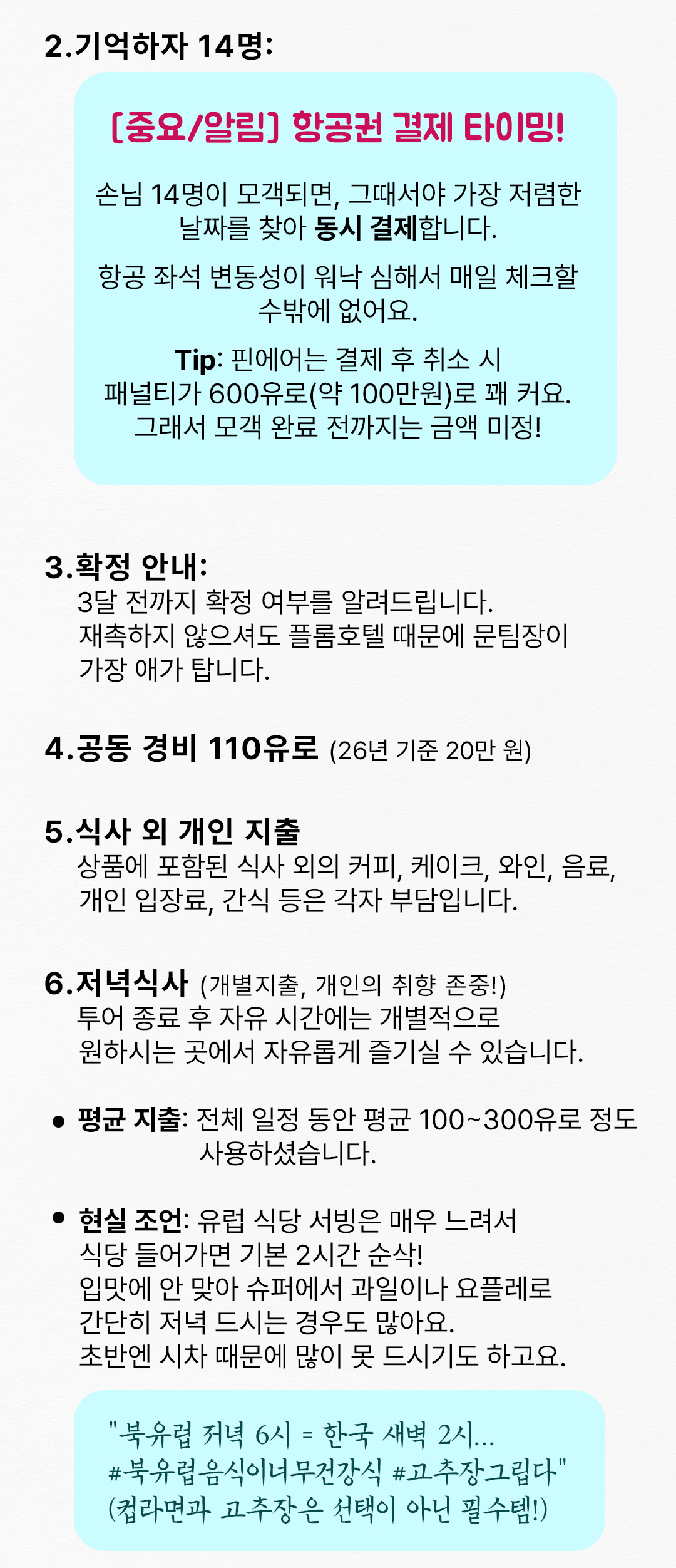 4) 식사: "저녁 포함? 그건 고객님께 고문입니다"
