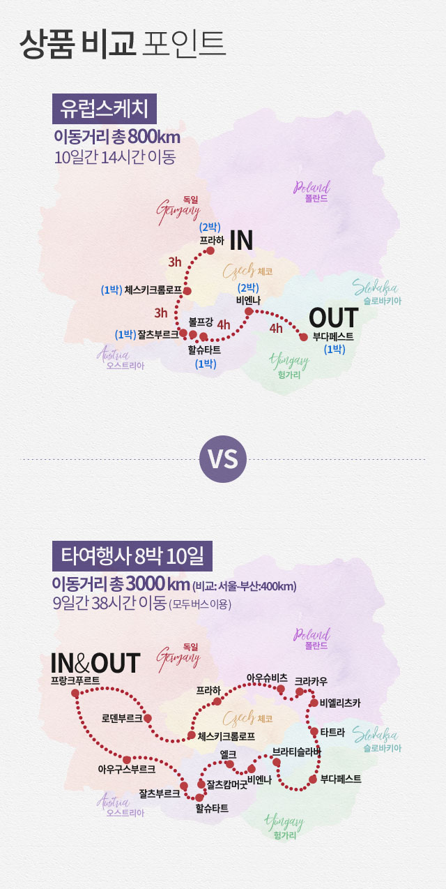 관광지 입장료 : 프라하성 내부, 클림트의 '키스'가 있는 벨베데레 궁전, 쉔부른 궁전, 잘츠부르크성 푸니쿨라, 비엔나 음악회와 장크트볼프강 유람선