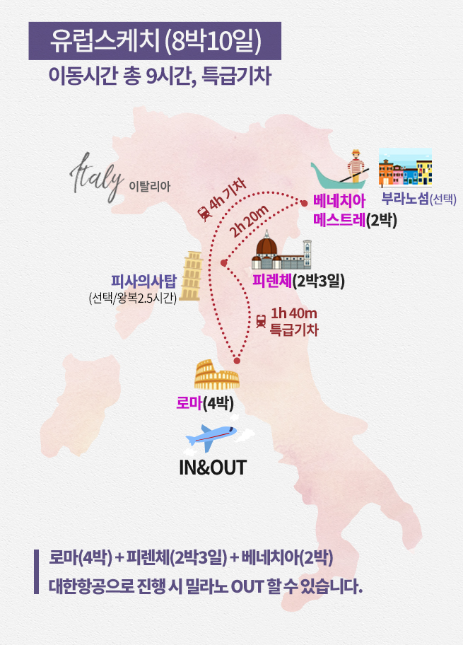 시내중심 4성급- 로마(4박) / 피렌체(2박) / 베네치아(2박)