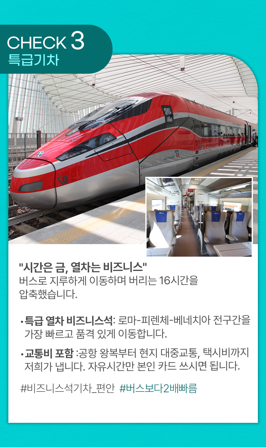 특급 열차 비즈니스석: 로마-피렌체-베네치아 구간